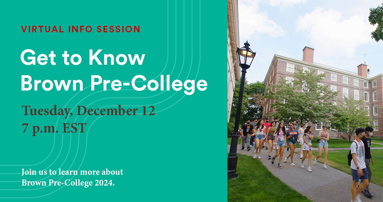 Join Adrienne Marcus, Dean, Pre-College and Undergraduate Programs, to learn more about Brown Pre-College Programs for summer 2024! Dean Marcus will share an overview of our 2024 programs, including our exciting new program offerings and highlights of the student life experience for all Pre-College students. This session will conclude with a live Q&A. We hope to see you there! |